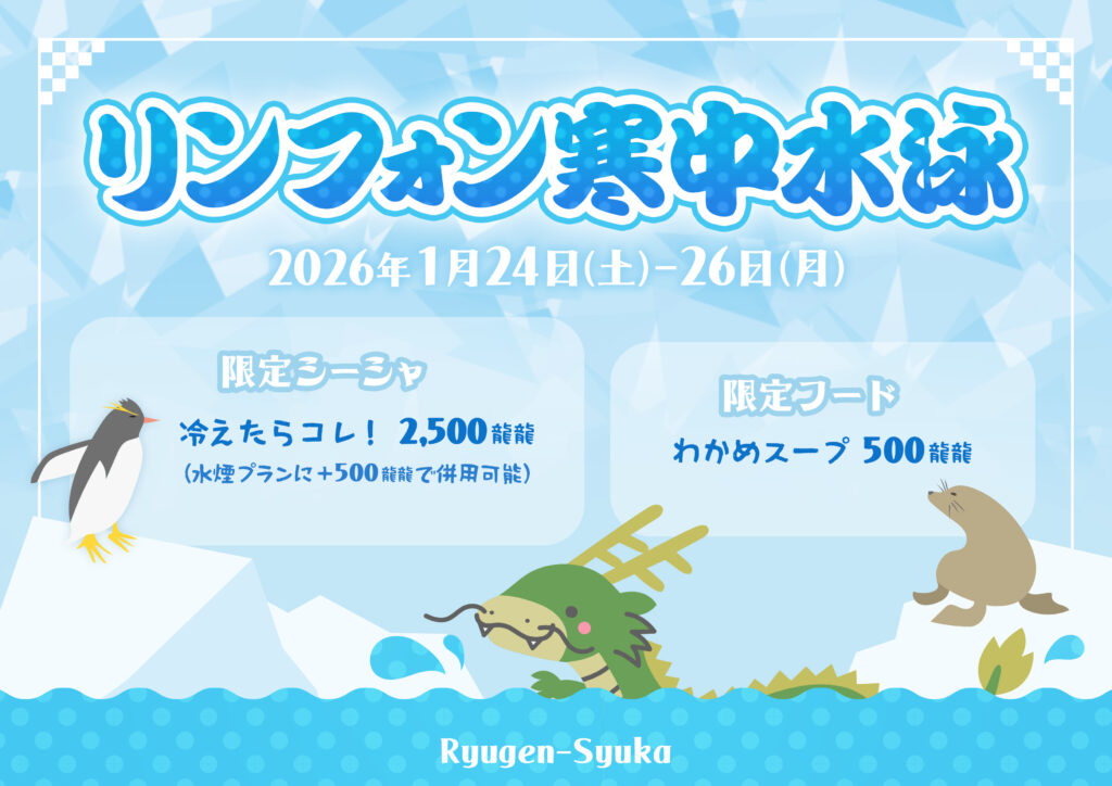 【龍幻酒家】1月24日(土)~26日(月)リンフォン寒中水泳