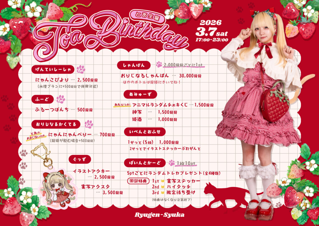 【龍幻酒家】3月7日(日)🥀真白とあバースデーイベント