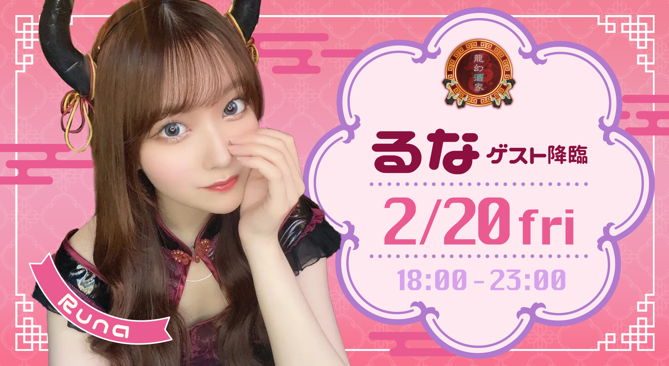 2月20日(金)18:00−23:00 元龍姫のるなちゃんがゲスト降臨❤️ お誕生日記念に会いにきてください✨