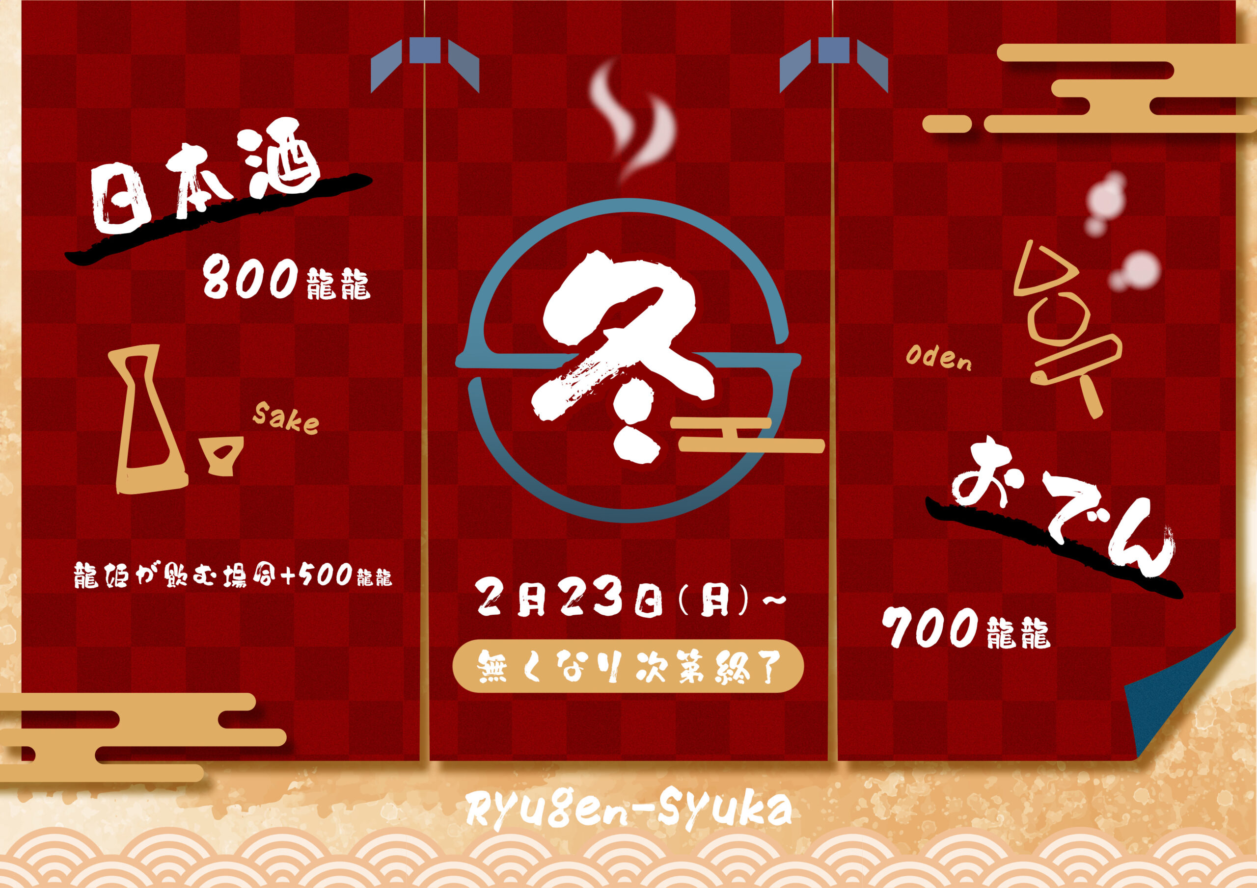 リンフォンでのバレンタイン🍫 甘いかどうかは貴方次第?素敵なバレンタインを龍姫と過ごしましょう💘 🍪限定シーシャ 恋心無添加クッキー/2,500龍龍(水煙プランに+500龍龍で併用可能) 🍫フード お前、パン買ってこいよ […]